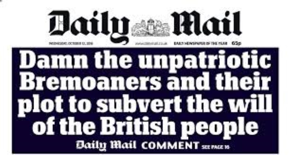 Again, it ignores the complexity of the various reasons why people voted they way they did. If there was a larger majority, sure, you could point to a minority that are sore losers. But it wasn't just a small minority of liberal elite who somehow rule the world, it was 48% of the vote. 48%! That's millions of people who are involved in the liberal elite that are somehow plotting to overthrow the ordinary voter. It's clear because many do not agree with the hardline stance the government is taking,* The Daily Mail* is casting them all as enemies, saying there are simply two sides. The virtuous ordinary voter who is being undermined by a shady cabal of sinister liberals.